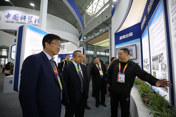 新疆维吾尔自治区党委常委、区政府副主席艾尔肯·吐尼亚孜、新疆科技厅长 新疆分院院长张小雷等参观展位