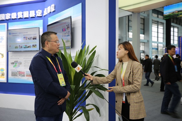 西安分院副院长杨青春接收媒体采访,介绍中科院参展项目与扶贫成就