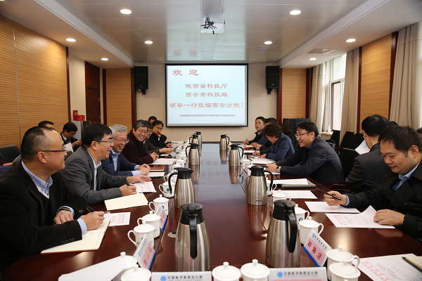 11月7日上午,陕西省科技厅厅长赵岩、西安市科技局局长李志军带领省市科技厅、局有关处长等一行到中科院西安分院、陕西省科学院,为促进“三个融合”,推动中国科学院西安科学园建设开展调研活动。西安分院 陕西省科学院院长赵卫,副院长杨青春、詹瑞,中科院西安光机所党委书记 副所长(主持工作)马彩文、副所长谢小平、胡炳樑,国家授时中心主任张首刚,地球环境所党委书记 副所长曹军骥和陕西省科学院各研究所负责人参加调研座谈。