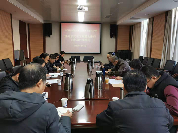 党组成员、副院长詹瑞首先传达了《中科院党建工作领导小组办公室关于开展机关形式主义问题大排查工作的通知》文件精神。提出要认真学习贯彻落实习近平总书记关于坚决整治形式主义、官僚主义问题的系列重要讲话和指示批示精神,要结合工作实际认真排查,持之以恒抓好问题整改落实,真正为基层减负。党组办公室主任白桦对大排查工作做了具体部署,详细解读了排查各阶段的重点工作以及工作方案的实施要求,包括组织领导机构、自查和问卷调研过程中的注意事项等。