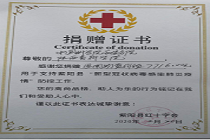 分省院捐赠医用隔离衣200套 紫阳县红十字会颁发捐赠证书