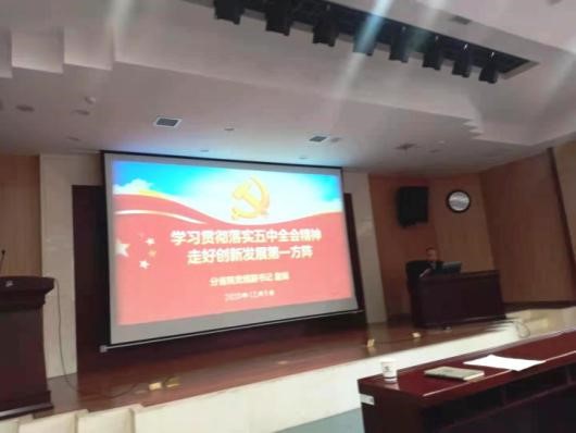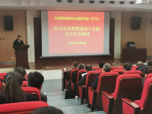 分省院党组要求各级党组织和广大党员干部要提高政治站位,深入学习领会党的十九届五中全会精神,深刻认识和把握全会召开的重大意义和规划制定的深远影响,将学习贯彻党的十九届五中全会精神作为当前和今后一个时期重要的政治任务。结合实际,要深入研究把握党中央关于制定“十四五”规划和2035年远景目标的决策部署,认真领会和深刻理解“坚持创新在现代化建设全局中的核心地位,把科技自立自强作为国家发展战略支撑”的重要判断,进一步坚定勇于开拓、攻坚克难的创新自信和科研定力,将学习成效转化为推动实现“四个率先”目标和谱写陕西新时代追赶超越新篇章的强大动力和切实行动。
