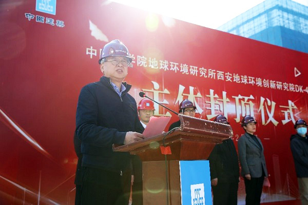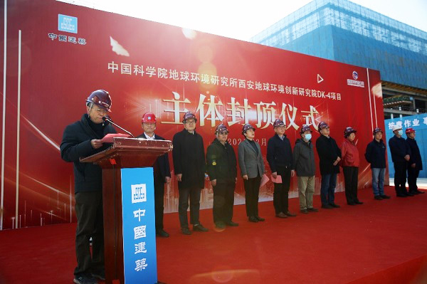冬日暖阳,阳光明媚。2月5日下午,在2021年春节即将到来之际,在终南山北麓山脚下的鄠邑区中科院西安科学园建设工地,举行中科院地球环境研究所一期项目群体封顶的简单庆典活动。