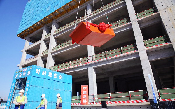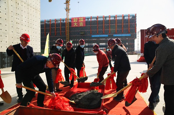 王伟、胡萌和刘禹分别致辞后,赵卫为仪式致辞并宣布封顶混凝土浇筑仪式启动。