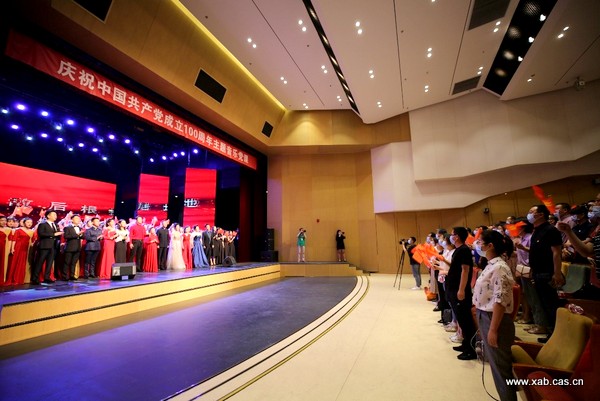 伴随着“时代楷模”“人民艺术家”贠恩凤老师和西安音乐学院文艺工作者带来的《唱支山歌给党听》《南泥湾》《延安颂》《东方红》《在希望的田野上》《为祖国干杯》《我的祖国》《不忘初心》等红色经典音乐作品歌声,现场观众置身于中国共产党百年征程的洗礼;中国科学院西安分院陕西省科学院科研工作者的集体朗诵《百年复兴 科技报国》《党旗引领科学路》《院士箴言》等节目,生动展现了奋战在科研一线的老、中、青科学家致敬国之脊梁,接受科学家精神洗礼,薪火相传、砥砺前行,不断推动科技事业蓬勃发展、蒸蒸日上,带着伟大的科技强国梦一起飞,将全场推向高潮。