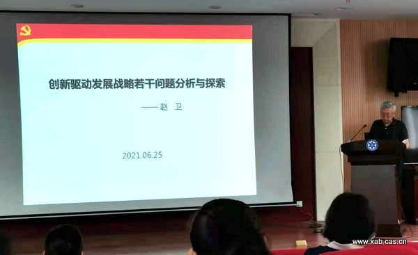 赵卫以《创新驱动发展战略若干问题分析与探索》为题,通过党史学习教育第四阶段学习和最近习近平总书记在全国两院院士大会和科协第十次全国代表大会上的讲话精神,深入解读了习近平新时代中国特色社会主义思想的核心要义和创新驱动发展的重要意义,并结合实际探讨、阐述分省院在落实创新驱动发展战略及院党组创新工程、率先行动计划的具体行动与举措,分析研究所面临的问题和破解措施。他进一步强调指出,实施创新驱动发展对中国社会和经济发展具有现实的重要意义,创新驱动发展中,科技创新是根本,分省院科技工作者要树立强烈的创新责任和创新自信,积极面向经济社会发展主战场,面向国际科技发展制高点,努力多出创新成果,为实施创新驱动发展战略,建设创新型国家多做贡献。