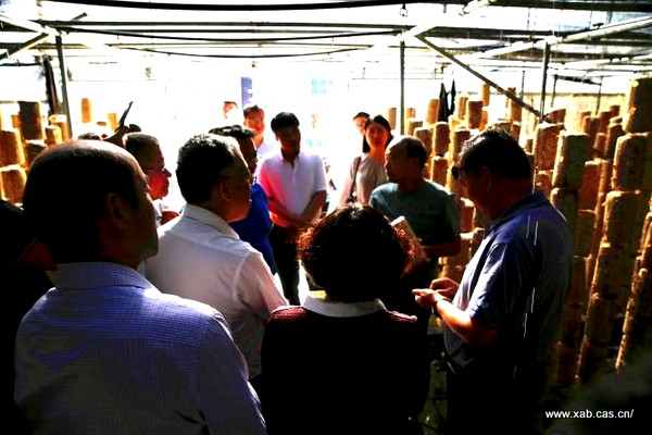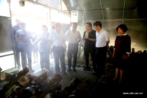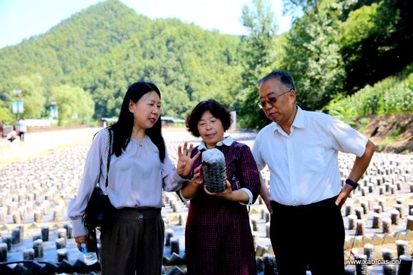 在下梁镇西川村研发基地考察金耳的繁育技术体系
