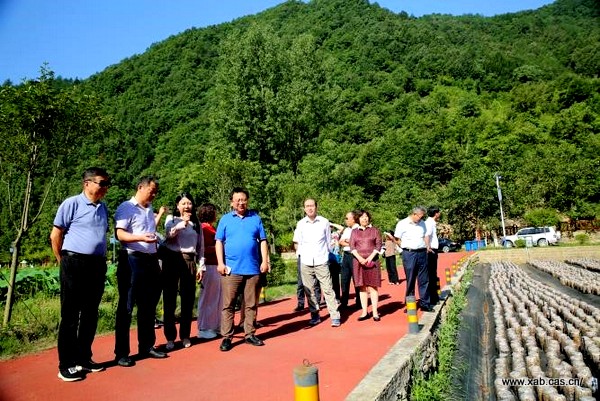 7月30日上午,专家组成员等先后到柞水县小岭镇金米村考察玉木耳及柞水3号黑木耳引种示范基地(课题一)、位于金盆村的柞水李玉院士工作站和菌种繁育基地(课题一)、位于下梁镇西川村的珍稀食用菌示范基地(课题二)、天麻良种繁育示范基地(课题二),及沿途考察木耳柞水1号、柞水4号、柞水5号3个种植示范基地(课题一)。