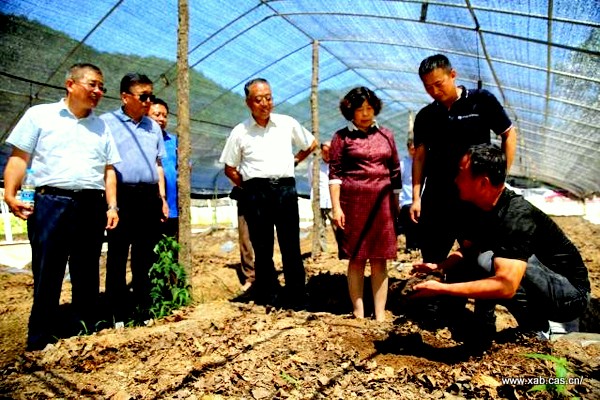在下梁镇西川村研发基地考察灵芝的繁育技术体系