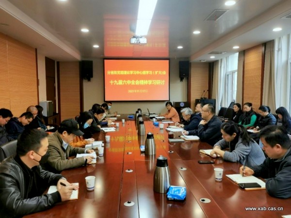 11月17日上午,中科院西安分院 陕西省科学院党组理论学习中心组召开十九届六中全会精神学习研讨(扩大)会。党组副书记詹瑞,党组成员、副院长杨青春和分省院机关全体职工参加。会议由分省院党组书记赵卫主持。