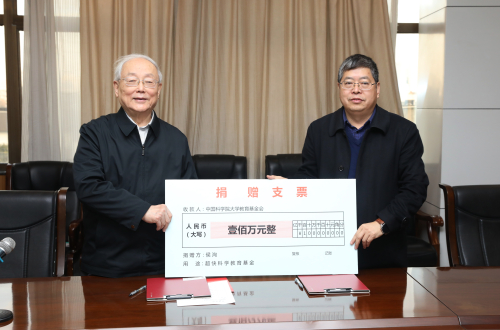 大会第二阶段是“超快科学”教育基金捐赠签约仪式。侯洵院士获奖后第一时间主动提出向中国科学院大学教育基金会捐出壹佰万元奖金设立“超快科学”教育基金,用于支持西安光机所研究生教育事业发展,激励和资助优秀研究生。在参会人员的见证下,侯洵院士与马彩文所长进行了“超快科学教育基金”捐赠签约,并转交了捐赠支票,马彩文为侯院士颁发捐赠证书。