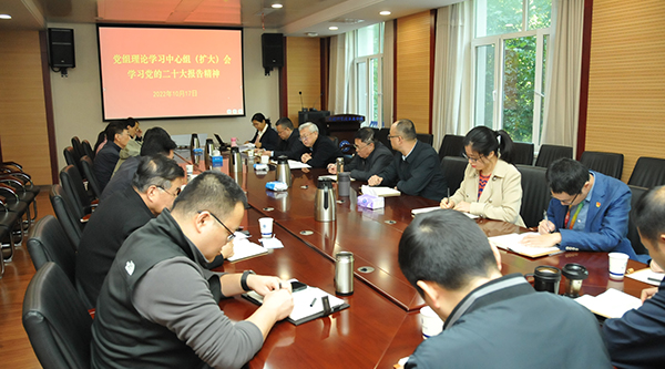 为深刻领会党的二十大精神实质,10月17日上午,分省院(分)党组召开理论学习中心组(扩大)会,党组成员、机关各部门负责人、两委委员参加学习讨论。(分)党组书记赵卫主持会议。