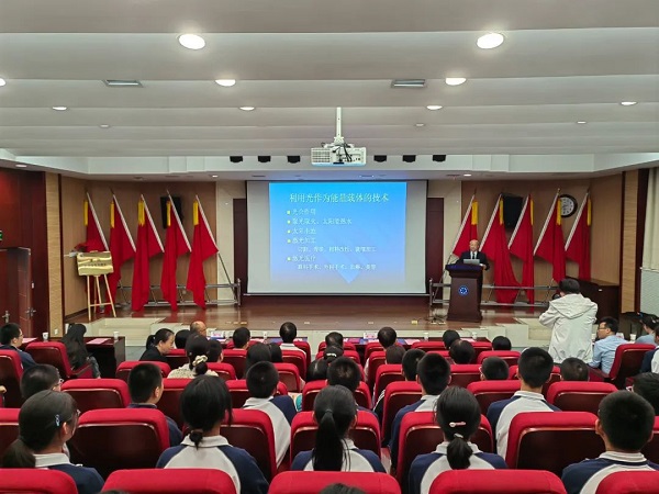 仪式结束后,侯洵院士以《光与我们》为题,从光——能量和信息的载体、激光加工、光学的应用等方面给西安市第八十三中学的同学们带来了一场内涵丰富的科普讲座。