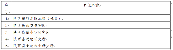 陕西省科学院是陕西省人民政府直属事业单位,内设办公室、科技处、党群工作处、监察审计处、组织人事处、院地合作处、财务资产处七个职能处室。本部门从事综合性自然科学研究,是我省地方科技力量的重要组成部分,以动物、植物、微生物三大学科为基础,以生物资源保护与开发、生态环境监测与修复、生物技术开发、现代农业与食品安全为研究领域,从公益性、战略性和适度前瞻性科技创新活动等方面服务于陕西省社会、经济可持续发展。陕西省科学院机关负责所属研究所的党建、领导班子建设、人才队伍建设、人事工作、学科建设、科研经费管理等。