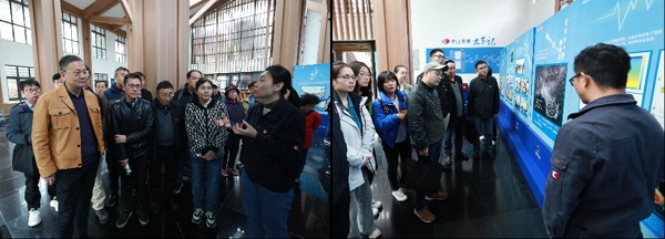 活动首先举行了见面会。会上,姚蕊和中科院地球环境所党委副书记、副所长金章东分别介绍各自单位概况,随后播放了“时代楷模”“人民科学家”南仁东的感人事迹视频和FAST宣传片《中国天眼》。在了解后,与会人员共同参观了全国科学家精神教育基地——FAST观测基地,大家分成若干小组阅读展板、观看实物,FAST运行和发展中心的党员同志热情细致的向地球环境所和西安分院系统单位的同志介绍南仁东的感人事迹和FAST的建设运行情况。之后,与会同志步行到FAST台址现场了解整个望远镜全貌,近距离感受“大国重器”的磅礴气势,行进途中,大家分组进行热烈的讨论交流。