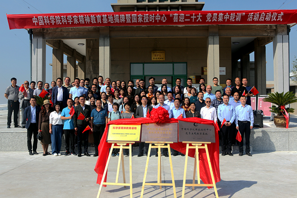 9月29日,中国科学院国家授时中心在蒲城县授时部举行科学家精神教育基地揭牌暨“喜迎二十大,党员集中轮训”活动启动仪式。中国科学院西安分院分党组副书记詹瑞等与国家授时中心领导班子成员、授时部班子成员及党员代表、临潼本部新任党支部委员等70余人参加仪式。仪式由国家授时中心纪委书记李晋芳主持。