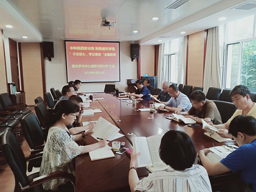 随后,孙传东带领大家读原著、学原文、悟原理,领学了《习近平关于“不忘初心、牢记使命”重要论述选编》中《加强纪律建设,把守纪律讲规矩摆在更加重要的位置》《坚定不移推进全面从严治党》等篇目部分内容,并谈了个人学习体会。他强调,要切实提高政治站位,深刻领会主题教育的重大意义,把开展好主题教育作为分省院近期一项重大政治任务认真抓紧抓实,要按照中科院党组和陕西省委主题教育的实施方案部署,把握“三对照、三结合”原则,认真开展好学习教育。读原著、学原文、悟原理是主题教育学习的根本遵循,要着力在学懂弄通做实上下功夫。坚持边学边查边改,结合次学习研讨的主要内容,要着手按照“三个一”的步骤深入一线开展调研工作。分省院机关在配合中科院指导组做好机关和系统研究所主题教育工作推进的同时,要指导陕西省科学院系统研究所按要求开展好主题教育,协助省院研究所制定切实可行的工作计划。要及时总结好的做法好的经验,做好信息宣传工作。
