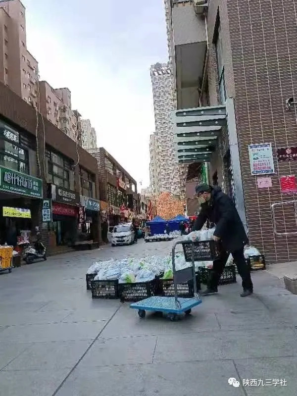 随后,立即加入志愿者队伍之中,开始紧张的物资分配、转移转运工作中。我今天的主要工作是拉平板车,给每个楼下搬运物资,一趟一趟来回拉锯式Repeat!紧张有序的物资分配转运持续了大约3个小时。值得一提的是,今天我们搬运的队伍中有一个身着深蓝警服的 “民警叔叔”。从只言片语中得知,他是12月31日从安康来驰援西安的。我不由自主地向这位“警察叔叔”致以默默的、崇高的敬意。服务结束,又出了一身汗,心潮澎湃的我,也领了一份政府驰援物资,感恩心情油然而生,但无以言表……