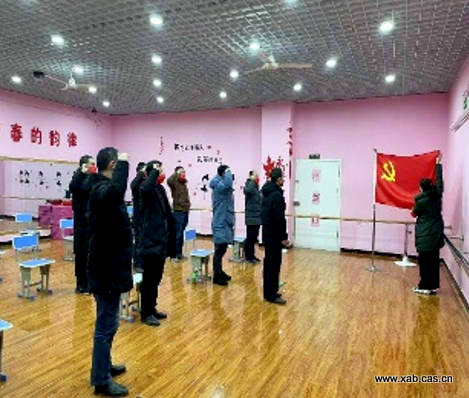 12月31日,在临潼区石油城小区的志愿者服务队临时办公区参加成立石油城志愿者临时党支部会议,分享志愿工作经验和感受。