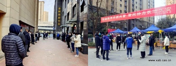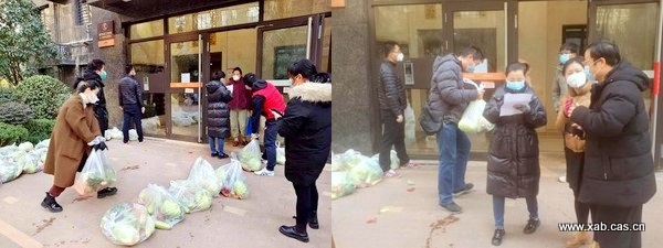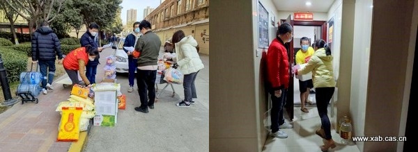 29日早上7点,陕西省动物研究所防控工作小组成员马健接到单位所在社区派发政府物资的通知,我们立刻通过电话沟通完成任务分派部署。在小组成员赶至现场的同时,联系到家属区居住的几位老师,并在他们的帮助下有序完成了物资领取工作。