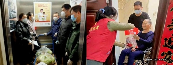 与志愿者分派各楼订购物资和志愿者为居民配送订购物资