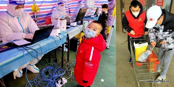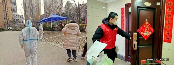 以往各地疫情爆发,都是我们给别的城市加油打气:武汉加油!满洲里加油!兰州加油…… 这一次,该我们西安为自己加油鼓气了。作为一名有着11年党龄的中共党员,自己能做些什么呢?疫情面前没有旁观者,身为党员不就应该敢于冲锋、主动作为吗?一个想法在心里萌生——去抗疫一线,到疫情防控最需要的地方。义无反顾,即刻开始搜寻抗疫志愿者组织,在研究所同事任永刚的引荐下先后加入了3个志愿者群。终于在2021年12月26号我们6名素不相识的青年,为了共同的目标,组建了一支抗疫志愿者队伍,并于次日志愿服务于大明宫街道社区核酸采样。从社区工作人员处了解到核酸采样急缺电脑设备,我毫不犹豫的将自己笔记本 “充公”。