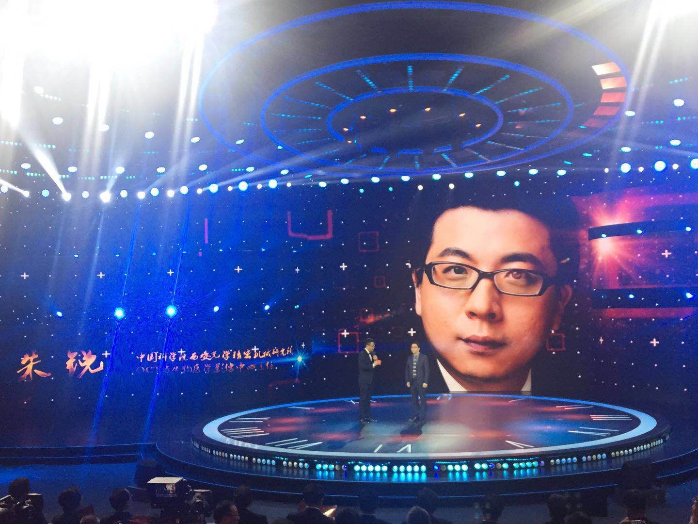 1月21日,“科技盛典——中央电视台2017年度科技创新人物颁奖典礼”在央视一套首播,中科院西安光机所OCT与生物医学影像中心主任、副研究员朱锐获2017年度科技创新人物。同时获得此项荣誉的还包括2017年度国家最高科学技术奖获得者王泽山、中科院青藏高原研究所院士姚檀栋、港珠澳大桥总工程师苏权科、寒武纪创始人陈天石陈云霁兄弟等人。 同期年度创新团队包括,天地一体化广域量子通信技术研究团队、中科院深渊科考队、高速铁路技术攻关组。