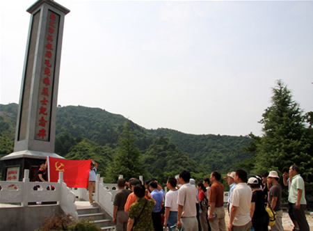 为庆祝中国共产党建党88周年,日前,陕西省微生物研究所党委组织全体党员赴宁陕县江口镇参观瞻仰了张文津、吴祖贻、毛楚雄三烈士纪念碑。在革命烈士纪念碑前,全体党员庄重地举行了“缅怀革命先烈坚定理想信念”活动。