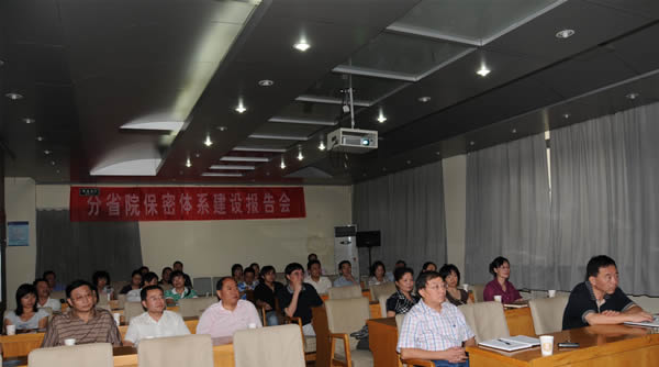2009年8月28日上午,分省院在院机关一楼报告厅举行了保密工作报告会,特邀请陕西省国家保密局范玉萍处长作专题报告,副院长吕建成、党组副书记、纪检组长陈铁成、分省院各单位代表、机关各部门全体人员出席会议。