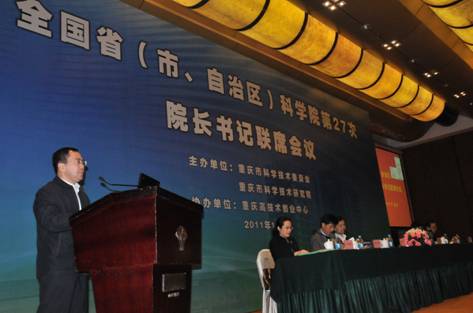10月21-23日,由重庆市科委、重庆市科学技术研究院主办的“全国省(市、自治区)科学院第27次院长书记联席会议”在重庆市举行。参加会议的有全国17个省级地方科学院的院长、党委(党组)书记及所属研究机构的负责人等200人;陕西省科学院院长周杰率省动物研究所、西安植物园、微生物所、酶工程所领导等出席或参加会议。