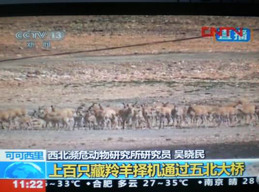 中央电视台1套、4套、13套、9套等媒体从2011年6月底始,用了一个月的时间,派出了三批记者团队,对藏羚羊迁徙之谜和通过青藏铁路进行了为时1个多月的跟踪连续直播报道。特别省动物研究所吴晓民及其研究团队作为此次系列报道的科研顾问和报道的研究成果单位,随先后在<新闻联播>、<新闻直播间>、<新闻纪实>、<新闻周刊>、<共同关注>、<新闻调查>、<朝闻天下>等节目播出,也受到国际、国内众多媒体的关注,使陕西省科学院、省动物研究所赢荣国内外,彰显了为我国的藏羚羊及高原野生动物的保护做出的重大贡献。