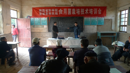 近日,陕西省微生物研究所承担“迁出窑洞食用菌综合利用”、“苹果腐烂病综合防治”项目的科技人员与澄城县科技局、渭南市移民局、庄头乡人民政府合作,开展了系列科技培训和现场帮扶工作。