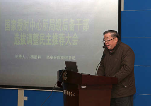 西安分院院长周杰首先介绍了推荐所级后备干部的目的意义、工作程序和推荐正、副职所级后备干部任职的条件和比例要求。会上,考察组组织参会人员填写了“国家授时中心后备干部推荐表”和“中国科学院所局级后备干部调整工作治理拉票行为情况测评表”等。