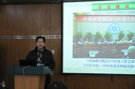 2月7日上午,分省院机关召开职工大会,学习传达中科院2012年度工作会议精神,部署2012年分省院工作。会议由分省院党组书记杨星科主持。