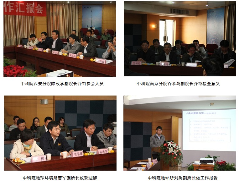 中科院西安分院陈改学副院长分别介绍了与会人员;地环所所长曹军骥研究员代表研究所对检查组的到来表示热烈欢迎,冀望通过此次检查活动帮助地环所提高安全保卫工作水平;南京分院谷孝鸿副院长向参会同志介绍了科学院开展此次互查活动的目的及重要意义。
