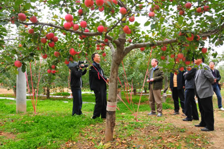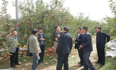 陪同杨星科调研考察的还有延安市果业局局长、洛川县果业局局长、洛川苹果研究所所长等。