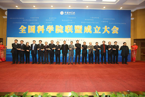陕西省科学院院长周杰出席会议。中国科学院、陕西省科学院、安徽省科学技术研究院、北京市科学技术研究院、重庆市科学技术研究院、甘肃省科学院、广东省科学院、广西科学院、贵州科学院、河北省科学院、河南省科学院、黑龙江省科学院、湖南省科学技术研究开发院、江西省科学院、山东省科学院、上海科学院、沈阳科学技术总院、武汉市工程科学技术研究院等18家单位共同签署了《全国科学院联盟成立北京宣言》,将进一步加强全面战略合作,集聚优质创新资源,共建协同创新体系,实现创新驱动发展。
