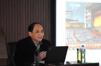 会议邀请中共陕西省委党校经济与社会发展研究所副所长、陕西省委理论讲师团成员侯建会教授,做了题为《夺取党的事业新胜利的政治宣言,全面建成小康社会的行动纲领》(十八大报告“亮点”解读)的辅导报告。
