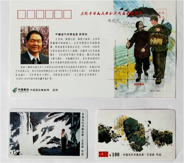 为庆祝中华人民共和国成立65周年,中国国际集邮网联合邮政、电信、造币等机构,最近出版并发行“庆祝中华人民共和国成立65周年”主题邮册,邮册内含有国家名片之美誉的邮票、充值卡、纪念章、纪念封及明信片等极具鉴赏和收藏价值的邮品。西安分院退休干部王百战的国画作品日前经中国国际集邮网监制印成相关邮品成为主题邮册之一。这是王百战的画作第三次被中国集邮网印刷成邮品发行。