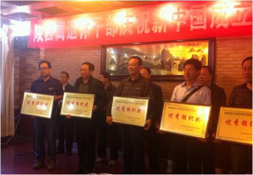 9月28日下午,陕西省委组织部、省委老干部局举办以“祖国在我心中”为主题的庆祝新中国成立65周年全省离退休干部才艺展示活动的颁奖仪式,陕西省科学院在此次活动中获“优秀组织奖”。