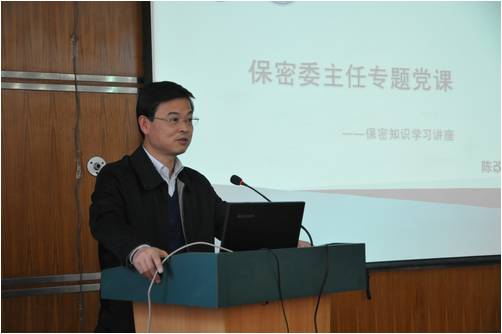 根据省保密委《关于认真落实保密委员会主任讲保密专题党课工作的通知》(陕保委办字[2014]4号)要求,分省院保密委高度重视,为了进一步加强涉密人员和全体工作者的保密“两识”教育,11月13日下午,分省院保密委在机关举办保密专题党课讲座。分省院副院长陈改学、机关保密委员会办公室成员、涉密要害部门、部位和机关各部门负责人参加。保密党课由分省院副院长、保密委员会主任陈改学主讲。