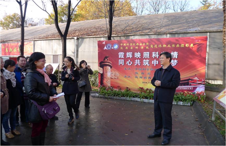 11月 25日上午10时,由中国科学院西安分院、陕西省科学院主办,西安植物园承办的“分省院 《霞辉映照科苑情同心共筑中国梦》书画、摄影展在植物园展厅展出。展期为2014年11月25日至12月5日。