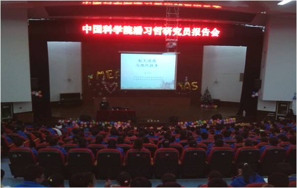 为使广大群众特别是中学生更多更快地了解现代科技知识,尤其是中国科学院建院65年取得的重大科学成果与其在国家实现创新驱动发展战略规划中的引领、支撑作用和实施“四个率先”计划的重大意义,结合中国科学院大学宣传计划,国科大陕西招生组于12月22—25日,邀请中科院院士武向平和中科院老科学家科普演讲团徐文耀、潘习哲、张德良、吴瑞华分别为陕西省延安中学、铜川市第一中学、西安铁一中、陕西省西安中学、西安高新一中等做多场次科普报告。