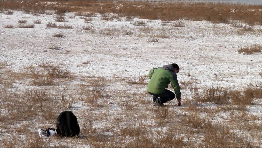 之后调研组赶赴合阳县继续进行考察。在合阳县洽川镇夏阳村,调研组对沿黄滩区盐碱化程度进行调研,对黄河内外滩盐碱化土壤改良可行性进行了评估。