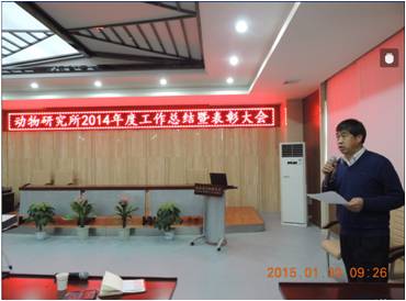 首先,由省动物所王开锋副所长宣读了2014年度先进集体和优秀个人,所领导为他们颁发了荣誉证书。接着,李保国所长代表所领导班子作了全所工作总结报告。