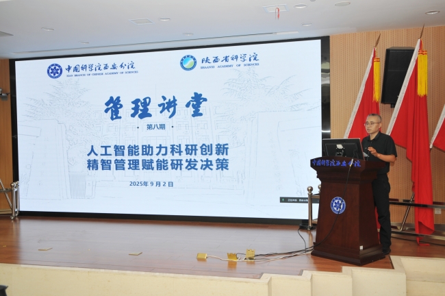 为拓宽科研人员在人工智能领域视野,深入了解科学大模型在科研创新中的应用,提升科研和管理创新能力,9月2日,中国科学院西安分院 陕西省科学院(以下简称“分省院”)组织举办第八期“管理讲堂”。本次管理讲堂的主题为“人工智能助力科研创新 精智管理赋能研发决策”。分省院党组书记詹瑞出席活动,分省院党组成员、西安分院纪检组组长李晋芳主持活动。
