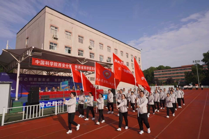 为进一步团结凝聚广大职工奋力抢占科技制高点,展示服务地方经济社会发展的拼搏活力和精神风貌,丰富文体生活,提高身体素质,9月29日,由中国科学院体协、陕西省教科文卫体工会指导,中国科学院西安分院 陕西省科学院(以下简称“分省院”)主办,陕西科学院工会、中国科学院西安分院体协承办,西安工程大学、陕西省红十字会支持举办的主题为“抢占科技制高点  全民健身促攻坚”分省院系统单位职工运动会在西安工程大学金花校区体育场举行。分省院党组书记、系统单位党委书记詹瑞,分省院院长、系统单位党委副书记张首刚,分省院党组成员、陕西科学院工会主席李晋芳以及分省院系统各单位领导出席活动。活动邀请西安工程大学副校长戴鸿,陕西省教科文卫体工会副主席王薇,西安工程大学校工会常务副主席张慧,西安工程大学体育部直属党支部书记张清录等嘉宾莅临现场。陕西省红十字会为本次运动会提供医疗保障支持工作。分省院系统干部职工500余人参加本次运动会。