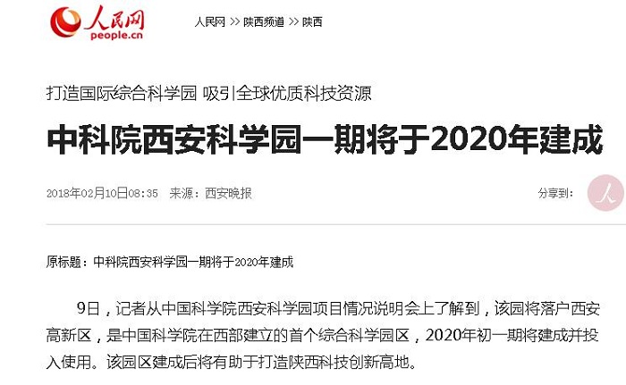 据了解,中国科学院西安科学园规划建设用地5平方公里,选址位于西安高新技术产业开发区。中国科学院西安科学园一期规划建设用地3000亩,将建设科技创新区,打造国家级科学研究基地、先进技术研发基地和高级人才培养基地。