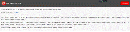 西安发布(西安日报记者 张潇)2月13日记者获悉,2018是国际权度局时间公报Circular-T(以下简称T公报)出版发布三十周年,中国科学院国家授时中心自T公报1988年3月1日起出版至今,已连续三十周年为其提供数据支持,并逐步成为长期综合性能排全球前三位的时间实验室