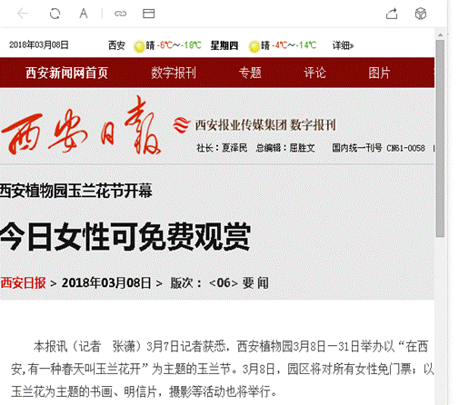 本报讯(记者 张潇)3月7日记者获悉,西安植物园3月8日—31日举办以“在西安,有一种春天叫玉兰花开”为主题的玉兰节。3月8日,园区将对所有女性免门票;以玉兰花为主题的书画、明信片,摄影等活动也将举行。